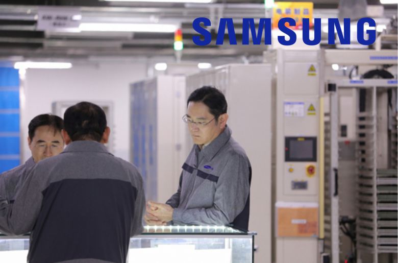 이재용 삼성전자 회장이 지난 24일 중국 텐진에 위치한 삼성전기 사업장을 방문해 MLCC 생산 공장 현장을 점검하고 있다. [연합]