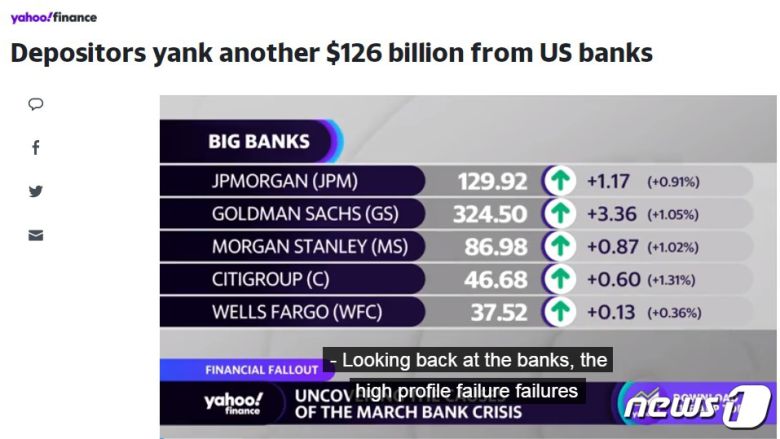 (서울=뉴스1) 박형기 기자 = 미국에서 전반적인 뱅크런(대규모 예금이탈) 조짐이 보이고 있다고 미국의 경제포털 ‘야후 파이낸스’가 지난달 31일(현지시간) 보도했다.