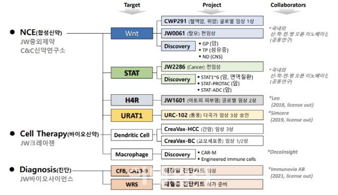 JW중외제약 신약 개발 현황. (제공=JW중외제약) |