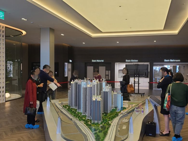 31일 강남구 대치동에 위치한 ‘휘경자이 디센시아’ 견본주택에서 방문객들이 단지 모형을 둘러보고 있다
