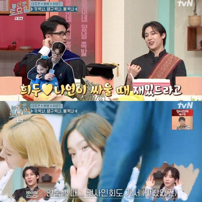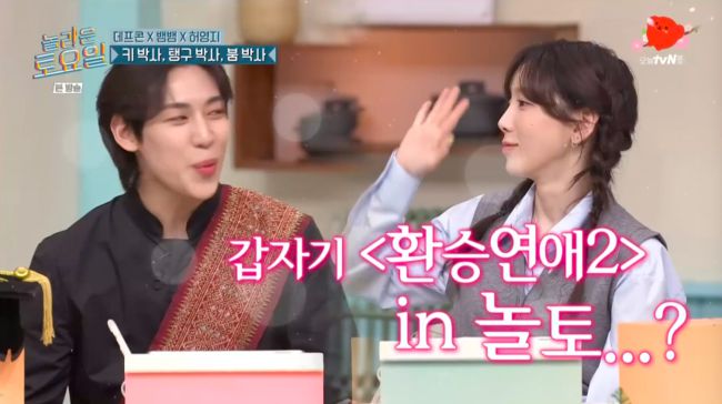 1일 방송된 tvN 예능 ‘놀라운 토요일’(이하 '놀토')에서는 ‘놀라운 박사들’ 특집으로 진행된 가운데 ‘연애 박사’로 가수 데프콘, 허영지, 뱀뱀이 등장했다.