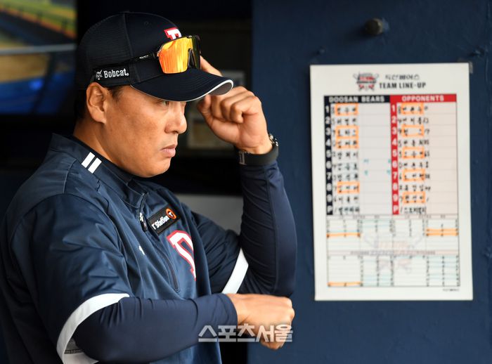 심각한 표정의 이승엽 감독 |