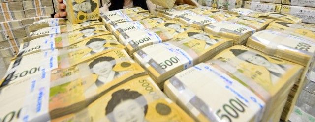경기도 수원시 장안구 한국은행 경기본부(경기남부 17개 시 관할)에서 직원들이 현금을 검수하고 있다.[연합]
