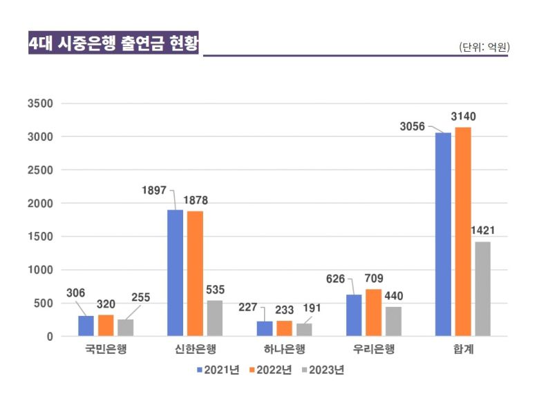 4대 은행, 2년 연속 출연금 3000억원대…“실제 규모 더 커”