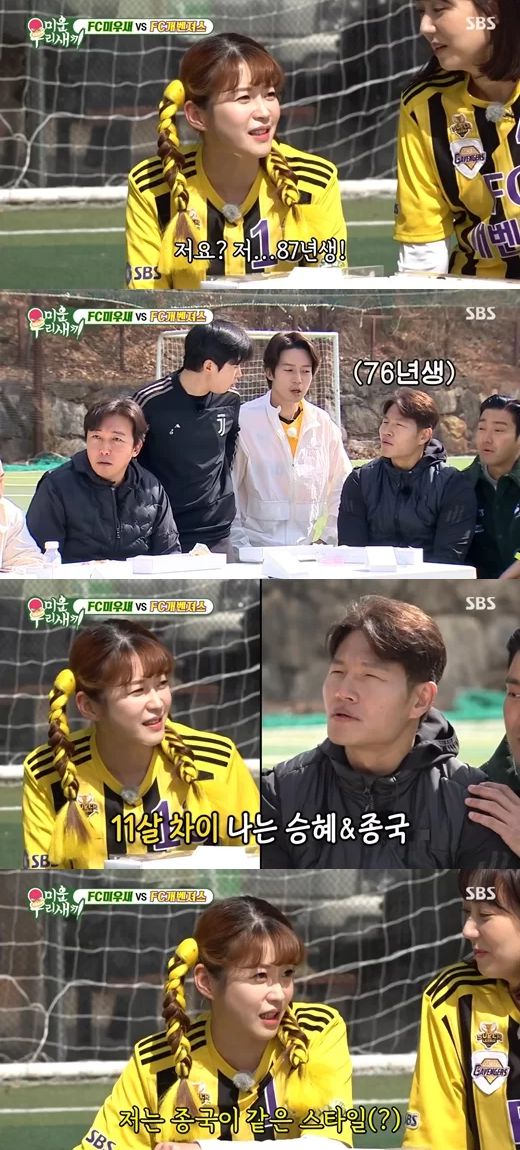 허경환은 "승혜 너무 예쁘지 않냐"고 부추겼고, 김종국은 "예쁘시다"며 수줍게 미소지었다.