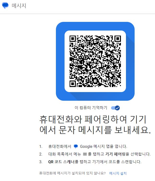 메시지 웹을 사용하려면 스마트폰과 PC 모두 웹에 연결된 상태에서 https://messages.google.com/web/로 이동하고 스마트폰에서 앱을 연다. 화면 왼쪽 상단의 메뉴 아이콘을 선택한 후 기기를 페어링하고, 웹 페이지의 QR 코드를 스캔해 동기화한다.