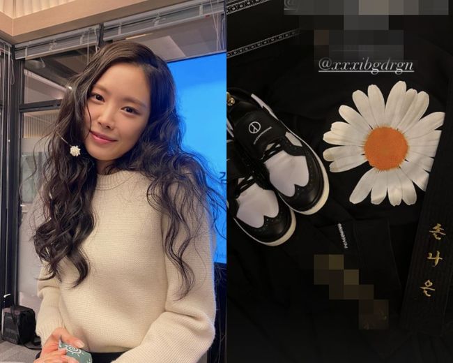 ‘지드래곤 신발’이라고 불리는 유명한 브랜드의 제품은 조세호, 뉴진스 역시 선물받아 화제된 바 있다. 특히 도복 위에는 손나은 이름이 새겨진 도복 띠가 가지런히 놓여있어 보는 이들의 부러움을 샀다.