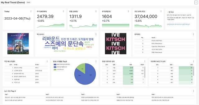 회사에 따르면 이 데모 서비스는 경제, 문화, 뉴스 등의 정보를 실시간으로 수집하고 분석해 사용자에게 편리하고 유익한 인사이트를 제공한다. 또 빅아이디언의 노코드 수집 및 연동 솔루션은 데이터 수집과 연동을 쉽게 할 수 있도록 도와주며, 슈퍼셋은 다양한 차트와 대시보드를 쉽게 만들고 관리할 수 있도록 해준다는 설명이다.