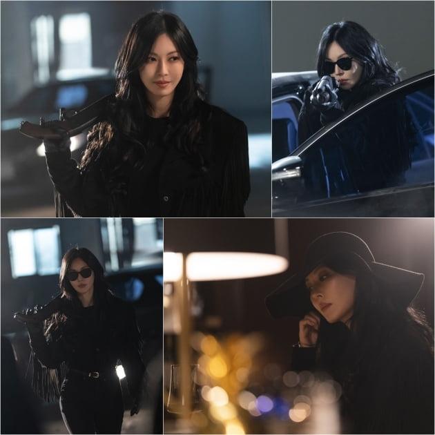 공개된 스틸 속 김소연은 머리부터 발끝까지 올 블랙으로 세팅한 채 미스터리한 분위기를 풍기고 있어 흥미를 치솟게 한다. 또한 김소연은 장총으로 어딘가를 저격하는가 하면, 길다란 총을 어깨에 걸쳐 매고 있는 모습이 돋보인다. 마치 지하세계의 여신처럼 매서운 카리스마가 보는 이를 압도할 정도다. 이처럼 다크 아우라를 풍기는 김소연이 '모범택시2'에서 과연 어떤 역할로 등장할 지 궁금증을 자극한다.