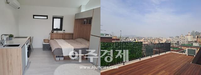 총 6가구 전 타입 모두 보증금은 300만원으로 동일하다. 월 임대료는 방 타입에 따라 다른데 70만~85만원 수준이다. 모든 방에는 책상과 침대, 기본적 수납공간에 삼성전자 소형 냉장고, 에어컨, 세탁기, 공기청정기 등 가전제품이 구비돼 있다. 단독 제공되는 테라스와 개별 수납공간이 추가로 있는 4층 펜트하우스는 월 120만원을 내는 대신, 신혼부부·자매 등 2인이 함께 거주할 수 있다.