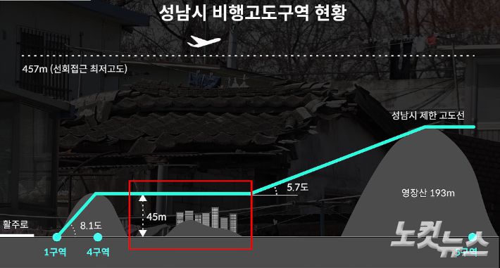 서울공항 인근 성남시 수정구 일대 마을은 45m 고도제한을 받고 있다.