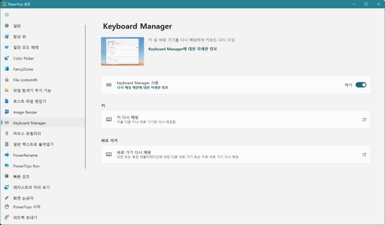 다행히 마이크로소프트 파워토이 앱을 사용하면 윈도우에서 제외됐지만 꼭 필요한 과거의 기능 세트를 키보드 매니저 유틸리티로 재매핑할 수 있다. 재매핑은 A라는 키를 눌렀을 때 B가 찍히도록 키와 입력값을 바꾸는 것을 말한다.