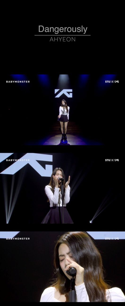 YG엔터테인먼트는 22일 공식 블로그에 베이비몬스터 아현이 부른 'Dangerously' 커버 비디오를 게재했다. 흠잡을 데 없는 보컬 실력은 물론 '올라운더' 수식어에 걸맞은 독보적 아우라가 담긴 영상이다.