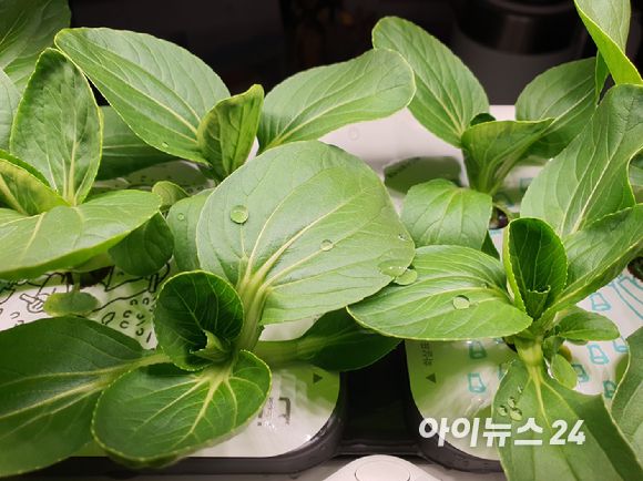 [써보니] "진짜 자라네"…'LG 틔운 미니'로 키운 청경채 맛보니