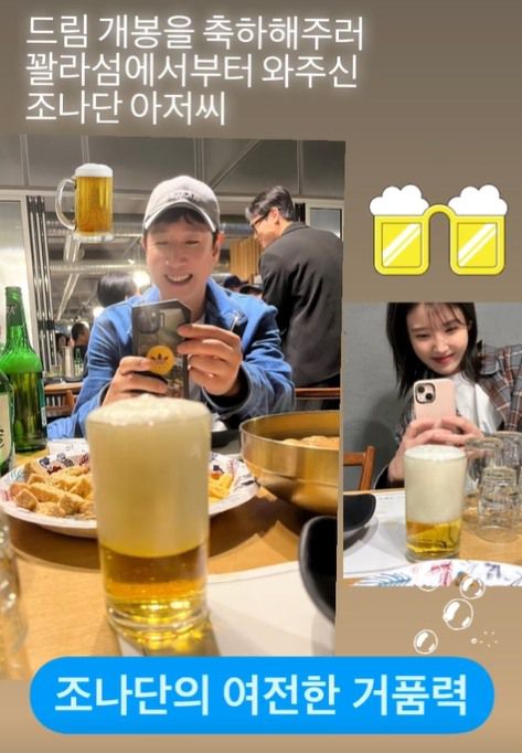 [헤럴드POP=이미지 기자] 아이유가 이선균의 거품맥주 퍼포먼스(?)를 인증했다.