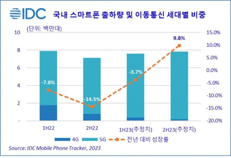 2022년 하반기 국내 스마트폰 시장 713만대 출하, 전년 대비 14.5% 감소