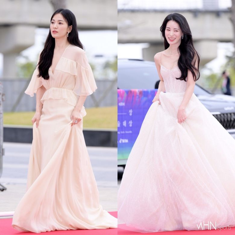 이날 '더 글로리'의 배우 송혜교, 임지연이 포토타임을 가지고 있다.