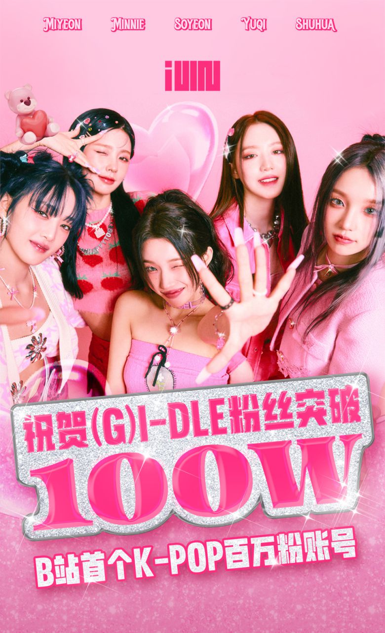 지난 28일 중국 동영상 사이트 '빌리빌리'에 따르면 (여자)아이들 공식 계정이 K팝 그룹 최초로 100만 팔로워를 달성했다.