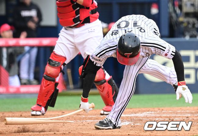[OSEN=잠실, 김성락 기자] 3회말 2사 1루 LG 오지환이 헛스윙 삼진아웃된 뒤 배트를 그라운드에 내려친 뒤 던지고 있다. 2023.04.29 /ksl0919@osen.co.kr |
