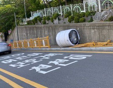 지난달 28일 오전 부산 영도구 한 초등학교 등굣길에 1.5톤짜리 원통형 화물이 굴러와 어린이 1명이 숨지고 어린이와 어른 등 3명이 다치는 사고가 발생했다. 사진은 등굣길로 굴러온 화물 모습. 부산경찰청 제공