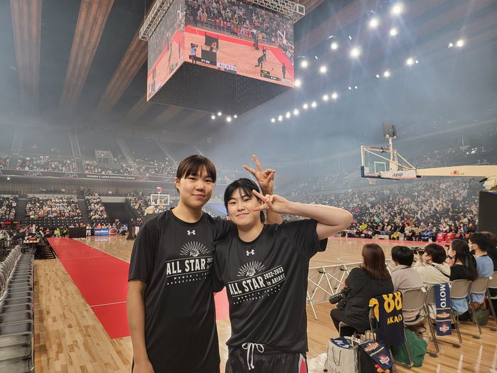 동갑내기인 둘은 지난달 30일 일본 도쿄 아리아케 아레나에서 열린 W리그 올스타 유나이티드팀 간 대결에 앞서 3점슛 콘테스트와 댄스 공연 등 이벤트에 참가한 둘은 서로 손하트를 만들며 각별한 사이를 자랑했다.