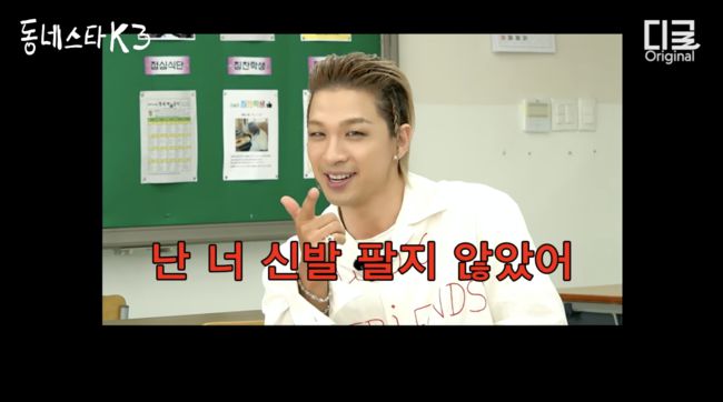 이후 GD에게 보내는 영상편지에서 "'동네스타K '에 나왔는데 기회가 되면 나와주길 바란다. 그리고 네 신발 팔지 않았어"라고 강조해 폭소를 유발했다.