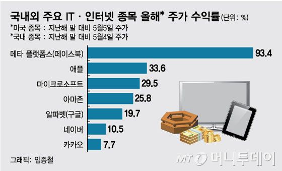 미국의 주요 빅테크 기업과 비교하면 성과는 더 초라하다. 연초부터 연이어 깜짝 실적을 발표한 빅테크 기업들은 주가도 크게 반등했다. 주요 빅테크 기업들의 연초 이후 주가 수익률은 △메타 플랫폼스 93.4% △애플 33.6% △마이크로소프트 29.5% △아마존 25.8% △구글 19.7%다.