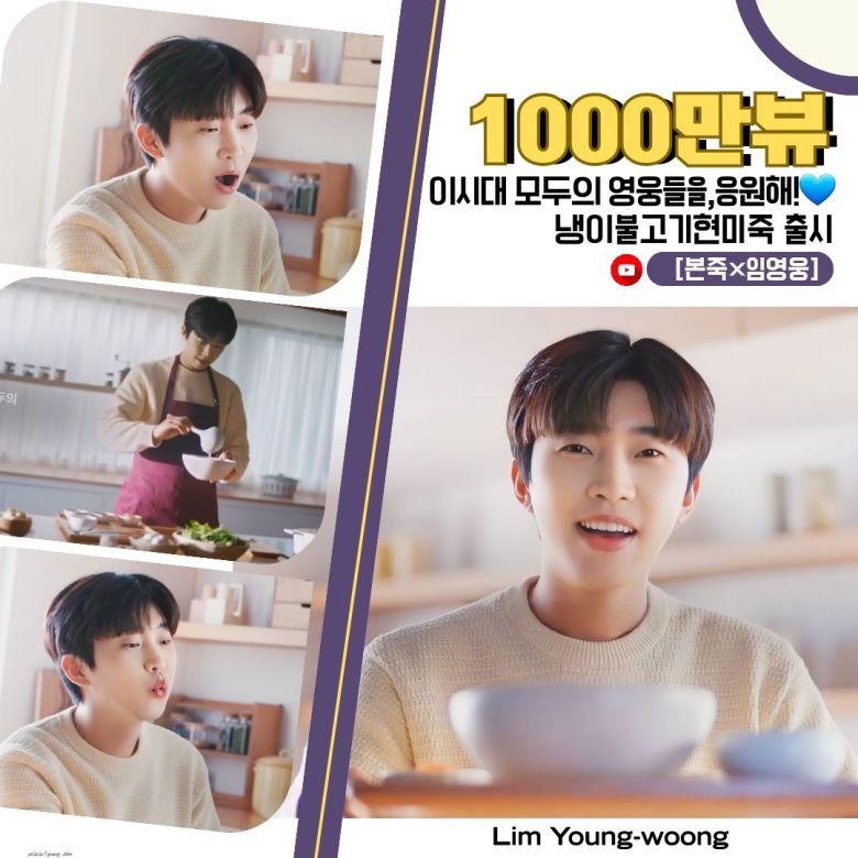 15초 분량 영상에서 임영웅은 눈부신 미모와 빛나는 연기로 본죽 모델 존재감을 빛냈다.