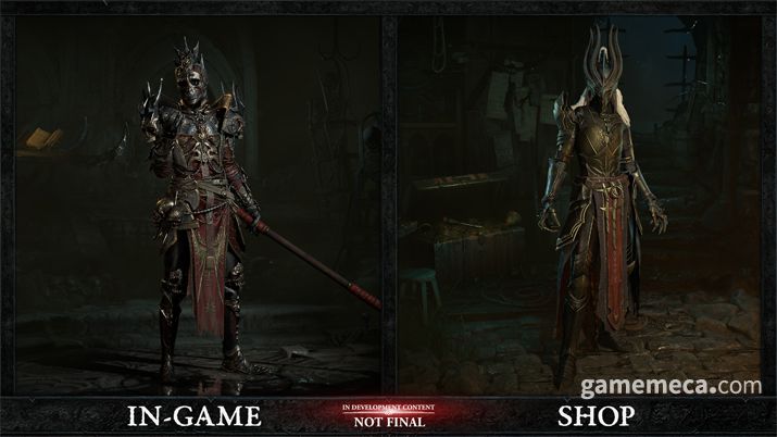 ▲ 플레이를 통해 얻을 수 있는 전설 방어구(좌)와 상점에서 판매되는 방어구 꾸미기 아이템(우) (사진출처: 디아블로 4 공식 홈페이지) |