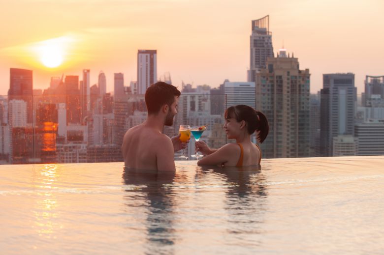 엘레강스 타일랜드.동남아를 대표하는 도시 방콕이 문화예술로 우아함을 더하고 있는 것은 원래 있던 것인데도 신선하다. 사진은 137필라스 루프탑으로 지는 석양과 사랑의 칵테일. |