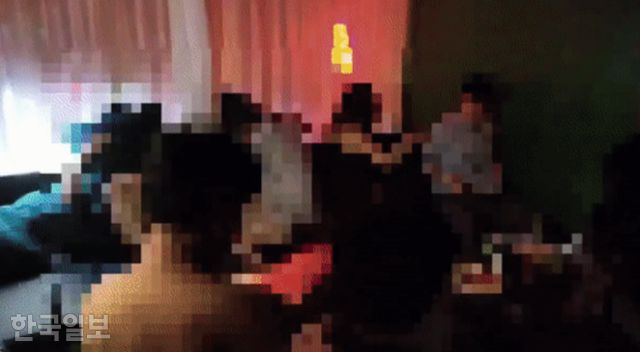 지난해 6월 적발된 강남구 '스와핑·집단성교' 유흥업소에서 성인 남녀 여럿이 옷을 챙겨 입고 있다. 서울경찰청 제공