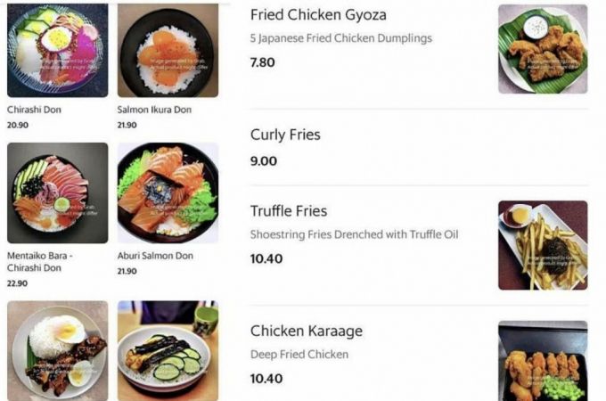 그랩 측에서 공개한 이미지를 보면 흰쌀밥 위에 해산물이 올라간 회덮밥부터 바삭하게 튀겨진 치킨 가라아게까지 다양한 음식 요리가 AI를 통해 구현됐다.