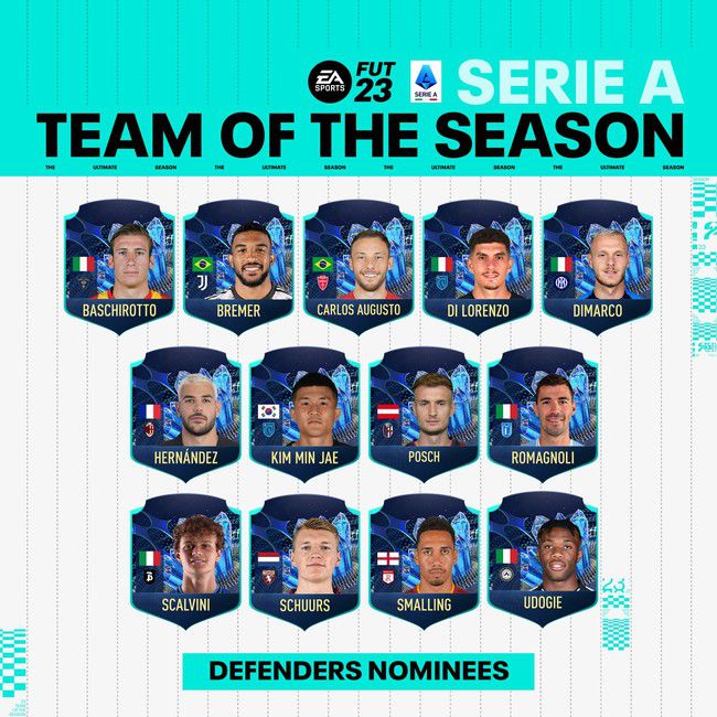 세리에A 올해의 팀 후보에도 선정됐다. 'EA Sports FIFA'는 16일 공식 홈페이지를 통해 2022-23시즌 이탈리아 세리에A 올해의 팀(Team of the Season, TOTS) 후보 45명을 공개했다. 수비수 부문의 13명 중 김민재의 이름도 당연히 있으며, 수상도 유력한 상황이다.