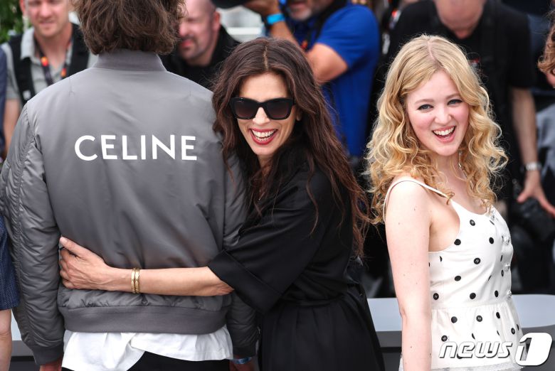 (파리=뉴스1) 이준성 기자 = 제76회 칸 국제영화제 개막 이틀째인 17일(현지시간) 프랑스 남부 칸 팔레 데 페스티발(Falais des Festival)에서 열린 ‘잔느 뒤 바리’(Jeanne du Barry) 포토콜에서 영화의 감독이자 잔 뒤 바리 부인 역을 맡은 마이웬과 마리 앙뚜아네트 역을 맡은 폴린느 풀만이 포즈를 취하고 있다. 2023.5.17/뉴스1