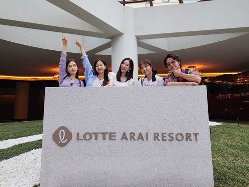 정다경은 22일 공식 SNS 채널을 통해 “촬영차 방문한 일본. 롯데 아라이 리조트에서 언니 오빠들과 좋은 시간 #롯데아라이리조트 최고”라는 글과 함께 사진을 게재했다.