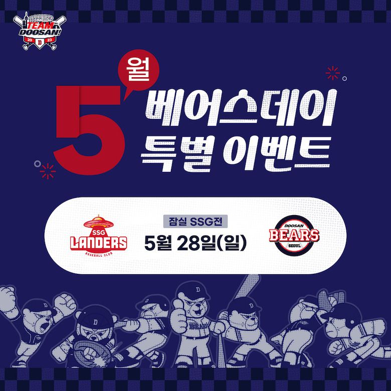 한편 두산베어스는 올 시즌 '두린이날', '퀸스데이', '미스터두데이' 등 다양한 이벤트를 진행 중이다.