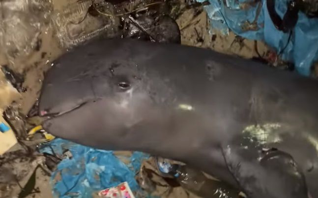 ‘웃는 얼굴’로 잘 알려진 강거두고래(이리와디강돌고래) 사체가 쓰레기 가득한 인도네시아 한 해변에서 발견됐다.