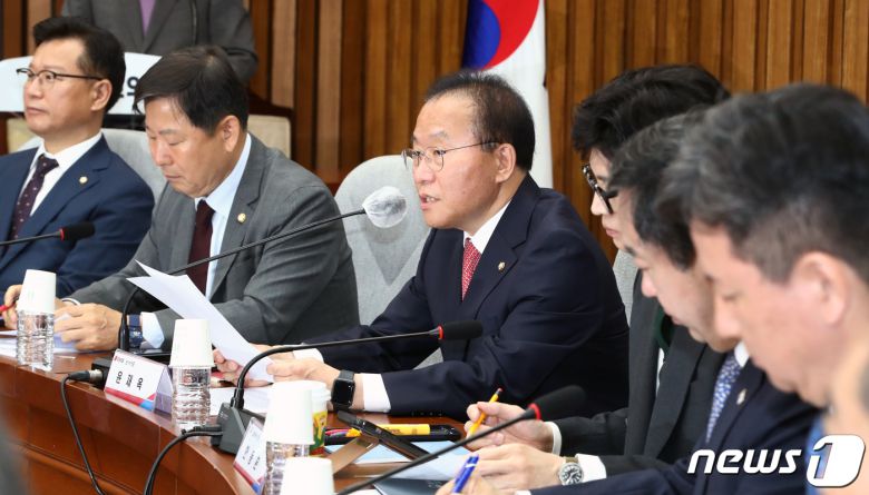 윤재옥 국민의힘 원내대표가 24일 오전 서울 여의도 국회에서 열린 공공질서 확립과 국민 권익 보호를 위한 당·정협의회에서 모두발언을 하고 있다. 2023.5.24/뉴스1 ⓒ News1 황기선 기자 |