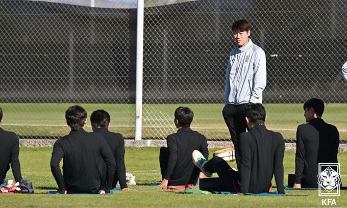 김은중 U-20 축구대표팀 감독이 23일(현지시간) 아르헨티나 멘도사의 클럽 데포르티보 고도이 크루즈 트레이닝센터에서 훈련을 앞두고 선수들에게 이야기하고 있다. 대한축구협회 제공 |