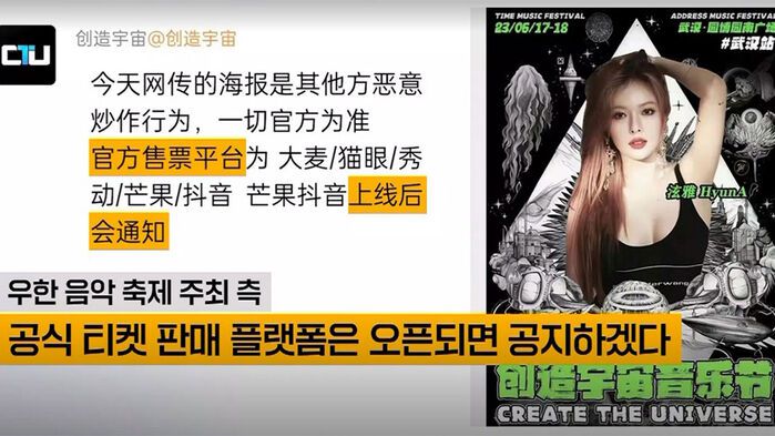 ▲ 우한 뮤직 페스티벌 주최 측은 현아의 공연 여부 등에 대해 추후 공지하겠다는 입장을 밝혔다.