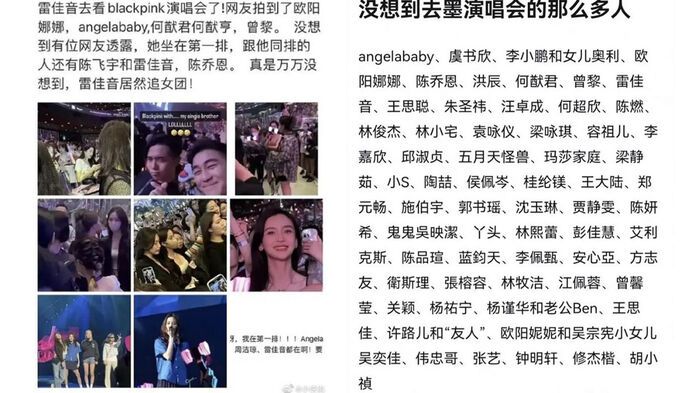 ▲ 중국 SNS에 돌고 있는, 블랙핑크 공연을 관람한 중화권 연예인 명단