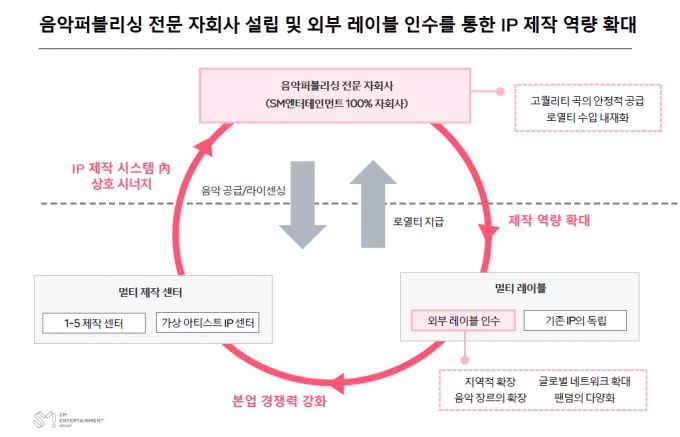 26일 SM은 5대 핵심 투자 포인트로 △선진화된 기업지배구조 구축 △멀티 제작 센터 시스템 도입 △카카오와의 사업 협력을 통한 IP 가치 극대화 △퍼블리싱 사업 및 레이블 인수에 대한 투자 △최적자본구조에 기반한 주주환원정책 등을 제시했다.