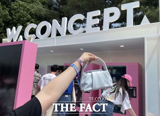 취재진도 W 아케이드 존에서 'MAKE IT YOURS' 벤딩 머신을 체험해봤다. 원하는 숫자를 입력하면 무작위로 경품을 주는 기기였는데 아뜰리에 드 루멘(Atelier de LUMEN)의 제품인 팡틴백(17만8000원)이 당첨됐다. W컨셉 측은 해당 경품은 W컨셉이 준비한 것 가운데 가장 좋은 것이라고 말했다.