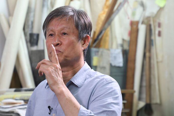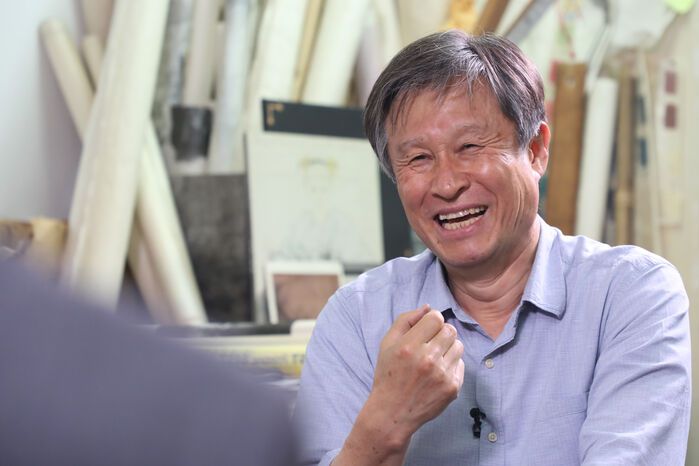 "집사람이 제가 작업 도중에 뛰어내릴까 봐서 문을 다 잠그고 졸졸 따라다니고 자동차 운전도 못하게 해요. 근데 나는 그런 생각은 없었어요. 어떻게든 시험에서 내 스스로가 통과해야 되겠다고 생각을 하고 그림을 그리면서는 그 생각은 없어요."