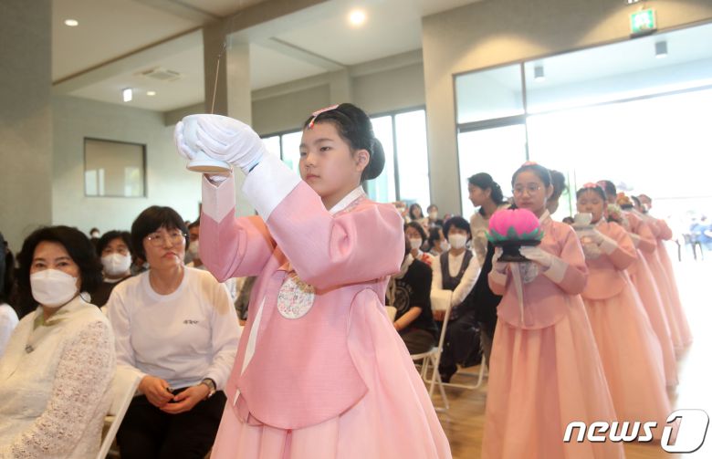 (광주=뉴스1) 김태성 기자 = 불기 2567년 부처님오신날을 맞은 27일 광주시 서구 치평동 무각사에서 열린 봉축법요식에서 육법공양이 진행되고 있다. 2023.5.27 /뉴스1hancut01@news1.krCopyright ⓒ 뉴스1. All rights reserved. 무단 전재 및 재배포 금지.이 기사의 카테고리는 언론사의 분류를 따릅니다.0공유하기