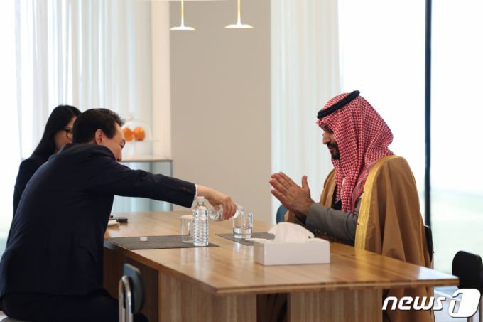 (서울=뉴스1) 오대일 기자 = 대통령실은 27일 윤석열 정부 출범 1주년을 기념해 ‘국민과 함께 시작한 여정’이라는 제목의 사진집을 발간했다고 밝혔다. 이번 사진집은 정치·경제·외교·안보·민생 등 국정 전반에 걸쳐 오직 국민만을 보고 숨 가쁘게 달려온 윤석열 정부의 첫 해를 115장의 사진에 담았으며, 특히 지난 1년간 대통령의 중요 행보 중 언론에 공개되지 않은 사진들이 담겼다. 사진은 윤석열 대통령이 지난 2022년 11월 한남동 관저에서 열린 무함마드 빈 살만 사우디아라비아 왕세자와 회담하는 모습. (대통령실 제공) 2023.5.27/뉴스1  Copyright (C) 뉴스1. All rights reserved. 무단 전재 및 재배포 금지.