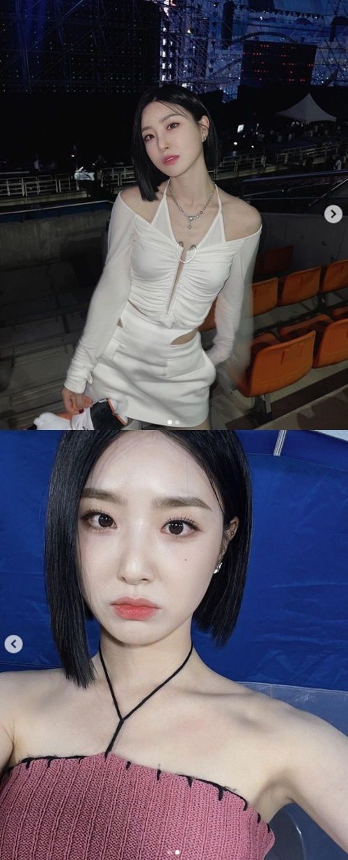 ‘단발좌’라는 별명다운 시크한 단발 헤어로 유나는 도발적인 예쁨을 자랑했다.
