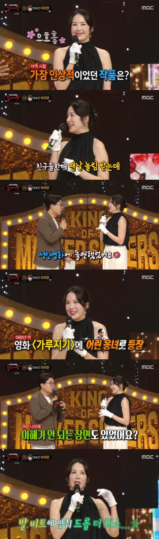 MC 김성주는 이지안을 소개한 뒤 그가 아역배우 출신이라며 출연작 중 인상 깊은 작품에 대해 물었고, 이지안은 "에로배우 출신이다, 에로영화인 '가루지기'에 어린 옹녀 역으로 출연한 적이 있다"라고 말했다.