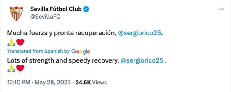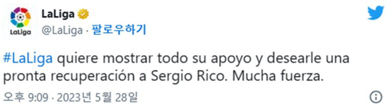 리코의 옛 소속팀인 세비야는 구단 채널을 통해 "빠른 회복을 기원한다"고 밝혔고, 스페인 프리메라리가 역시 공식 사회관계망서비스(SNS)로 리코를 응원했다.