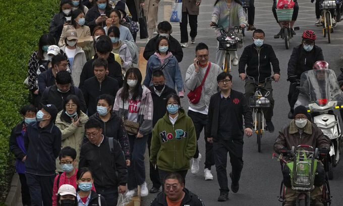 지난달 26일 중국 베이징의 한 거리에서 시민들이 이동하고 있다. AP연합뉴스
